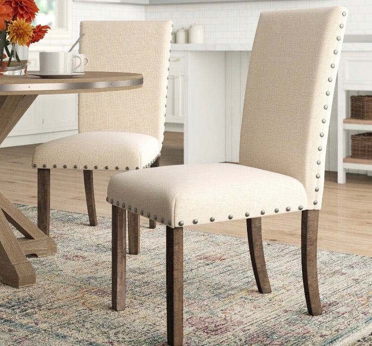(Set of 2) Ismay Linen Upholstered Dining Chair in Beige CG591
