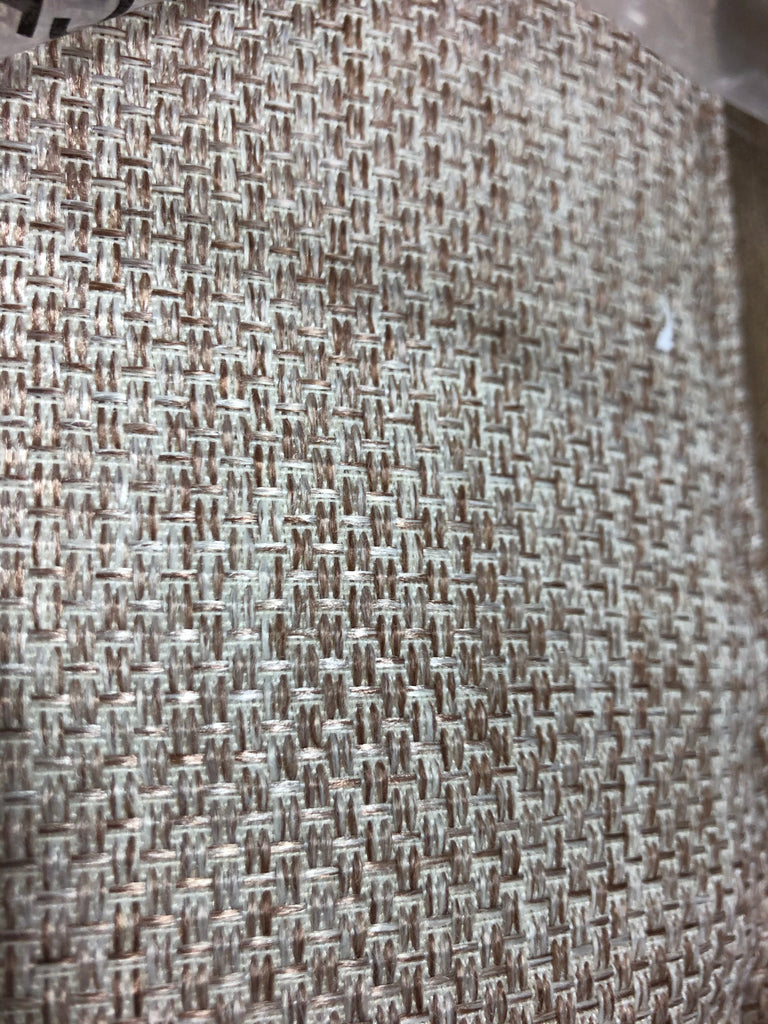 This is an open box item in great condition. Assembly is required, hardware is included. Color is beige with dark brown legs/nailheads.