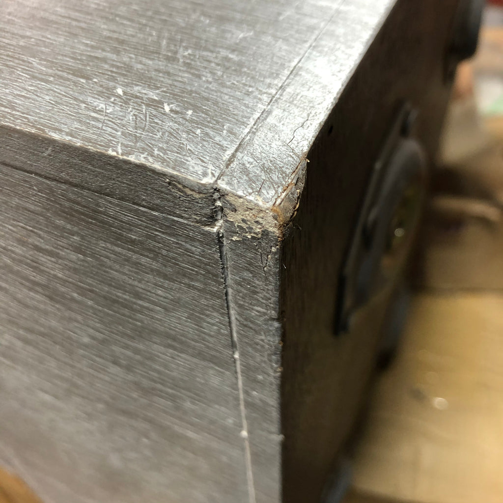 *Some corners are bent(on the bottom/back of BOTH tables), see pictures for details* This item sells as is. Color is slate gray.