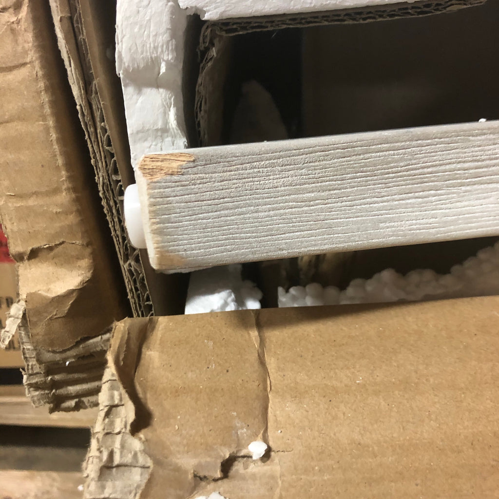 This is an open box item in good condition. Assembly is required, hardware and instructions are included. Includes 2 stools.