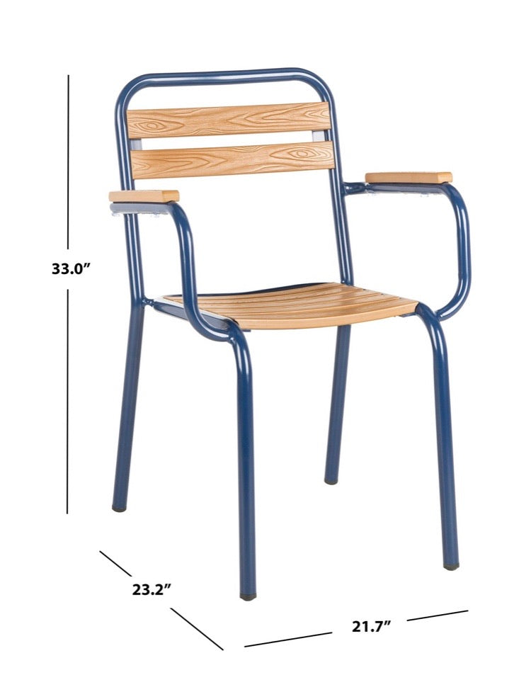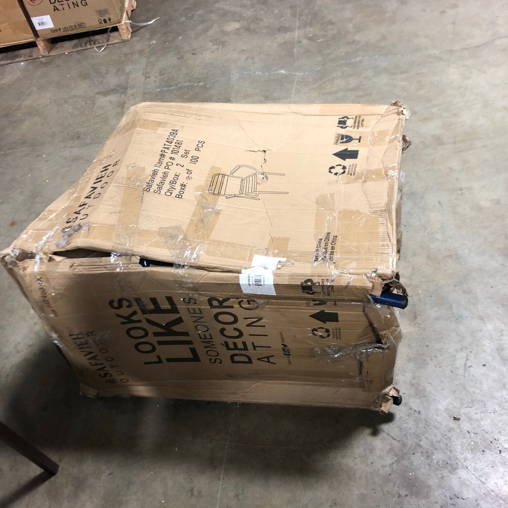 These items are in good condition and are already assembled. These are open box items. Color is a dark blue with wood slat seats/accents.