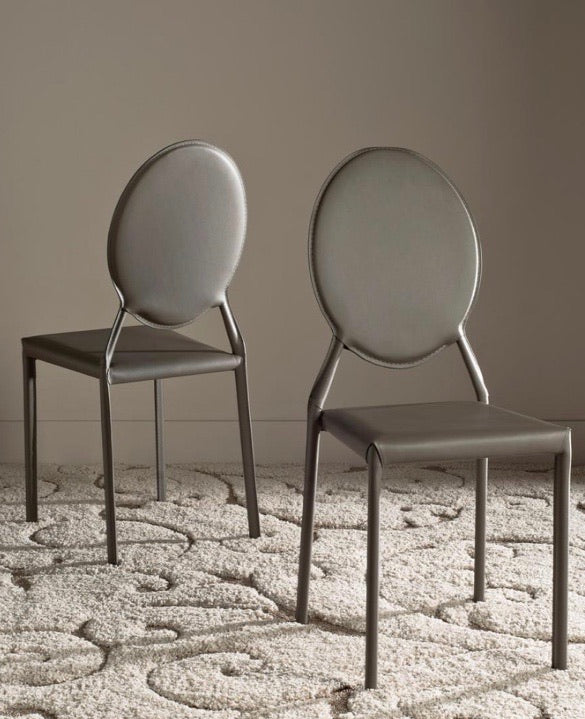(Set of 2) Warner Gray 37 in. H Round Back Leather Side Chair CG492
