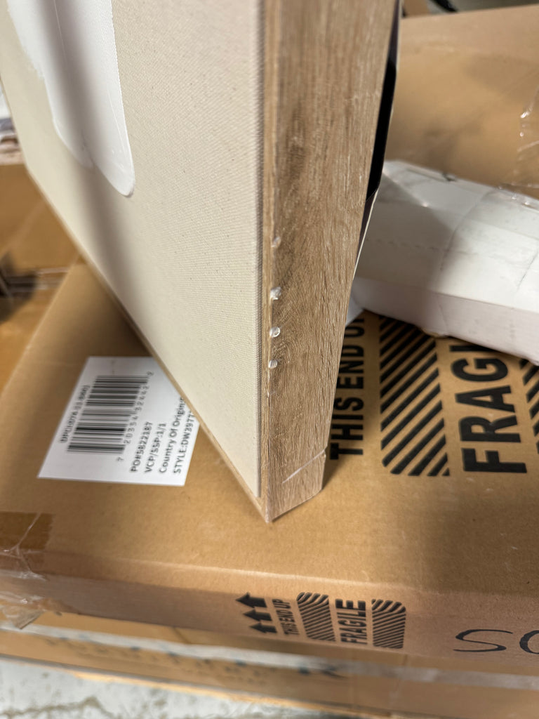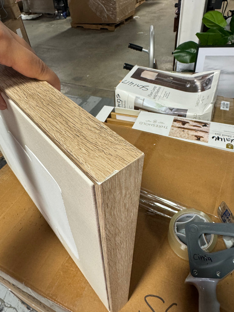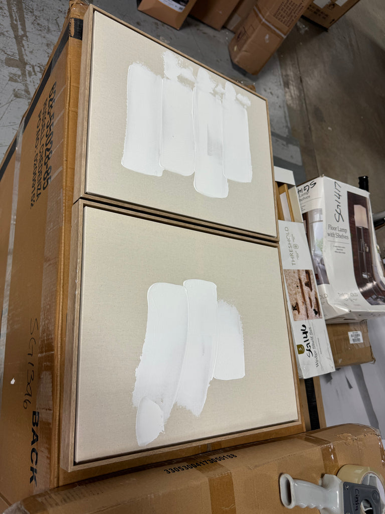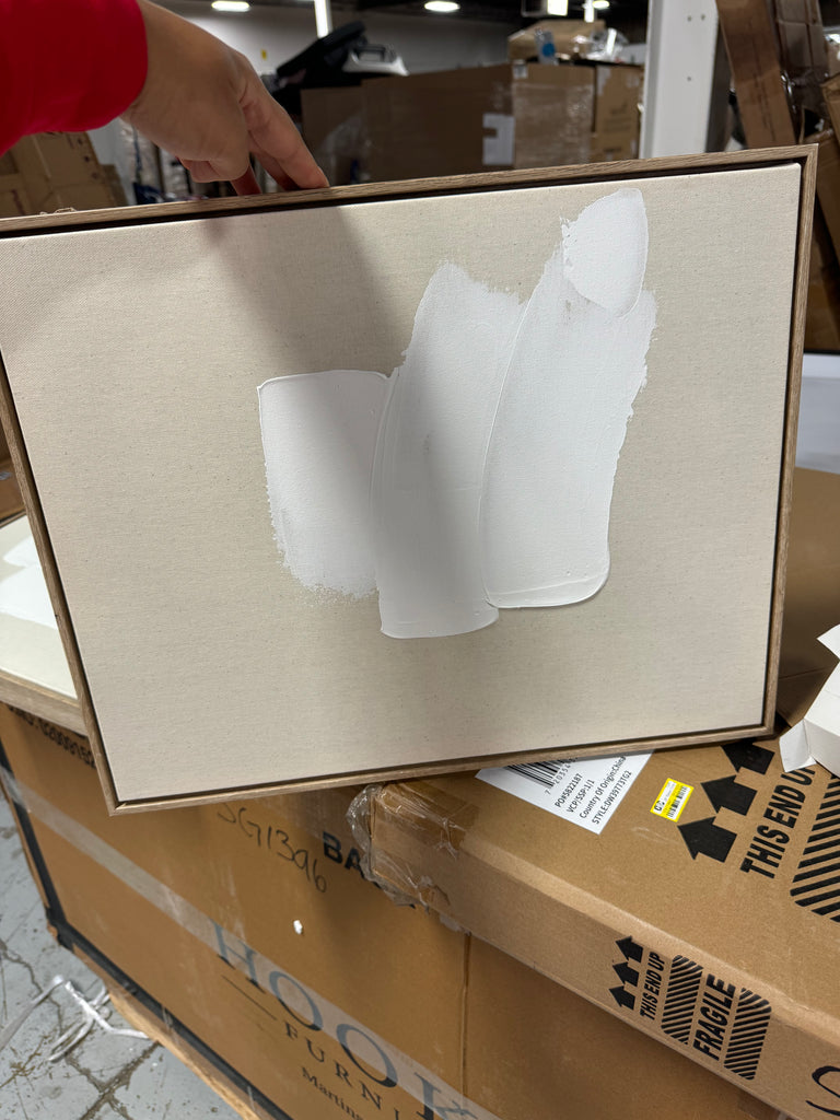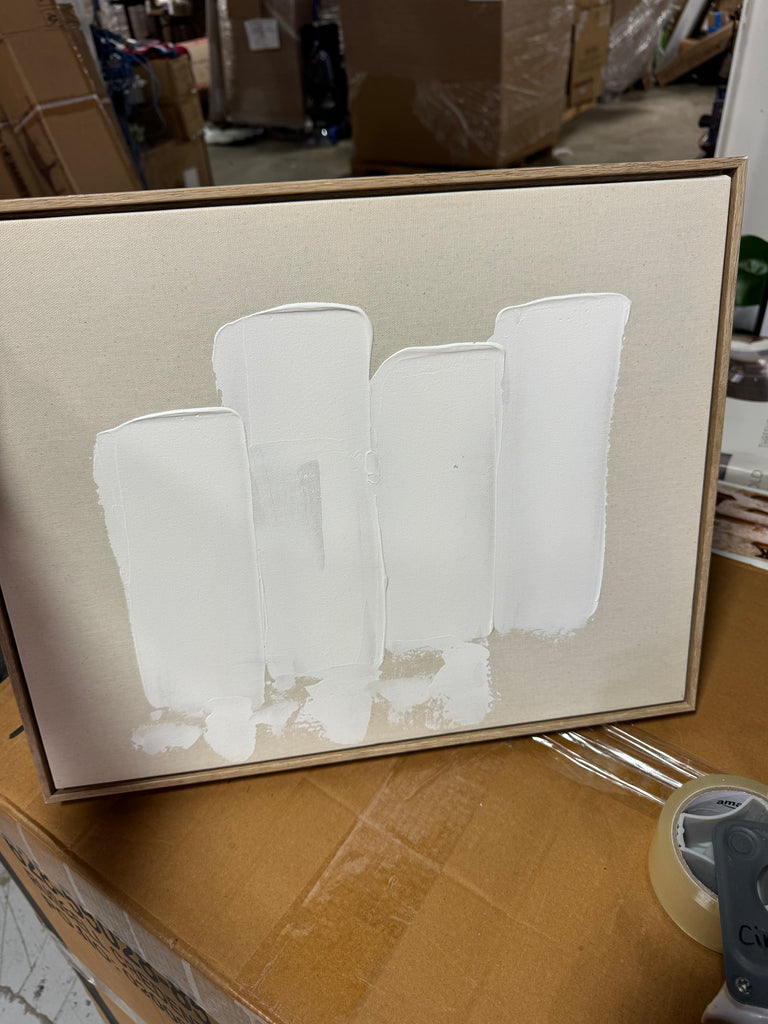 Note: Minor cosmetic imperfections on wood frame, back paper cover ripped on one canvas, see pictures