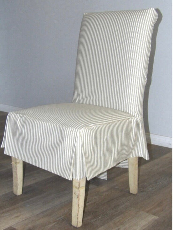 (Set of 4) Khaki Stripped Dining Chair Slipcovers CG525