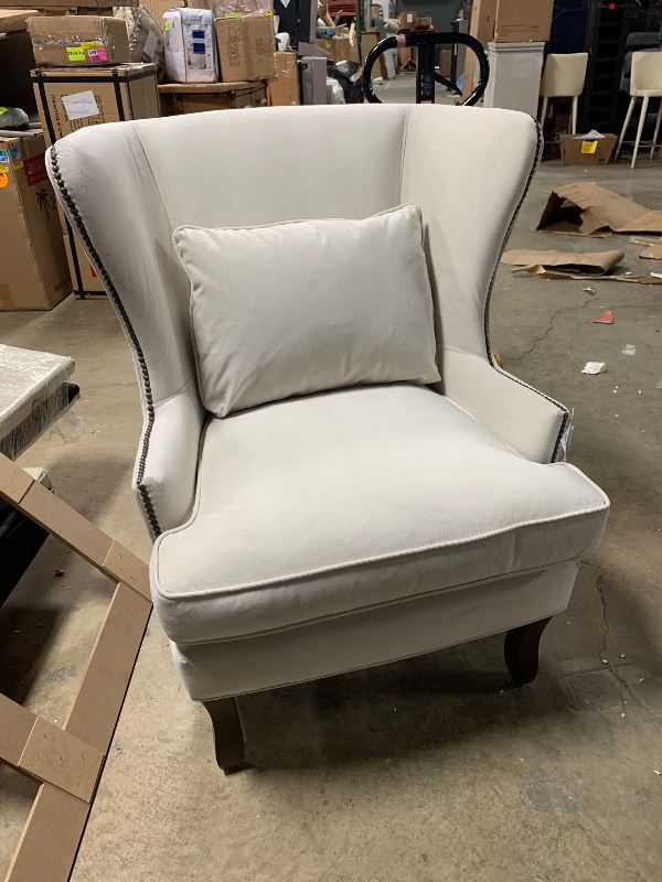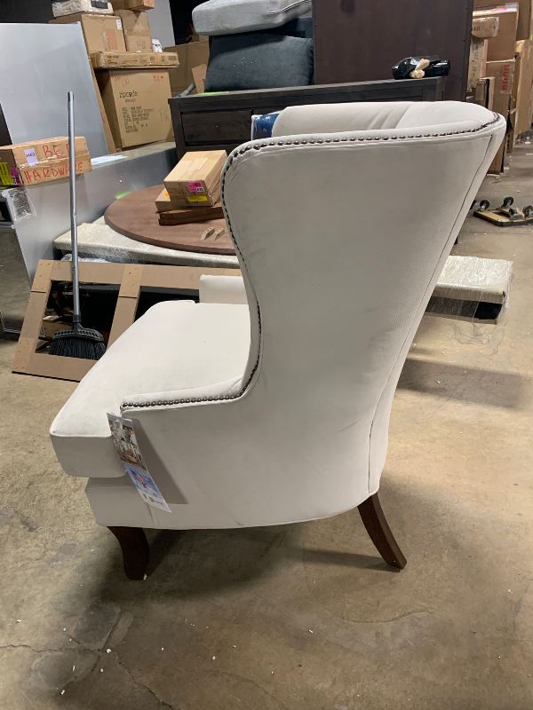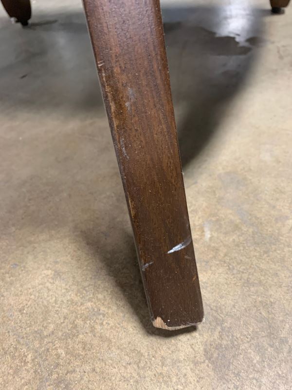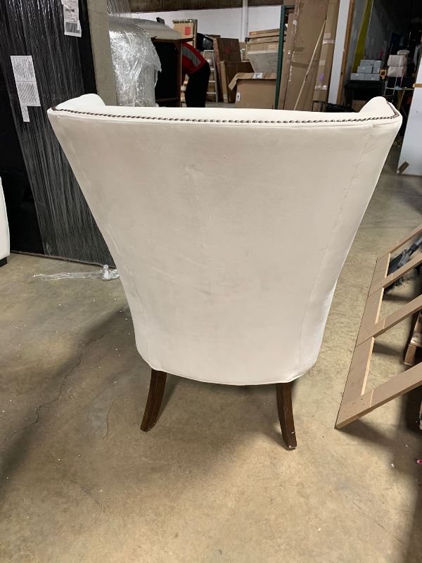 Note: See photos for accurate upholstery color. Minor warehouse dust. Back leg has some minor nicks/scratches.