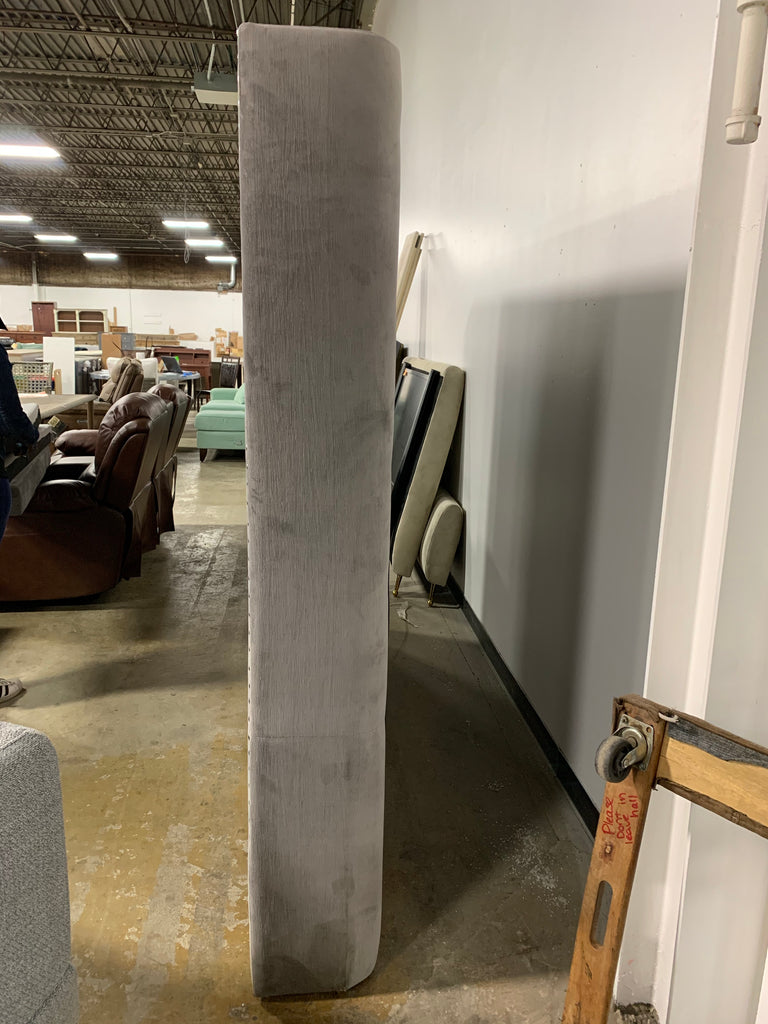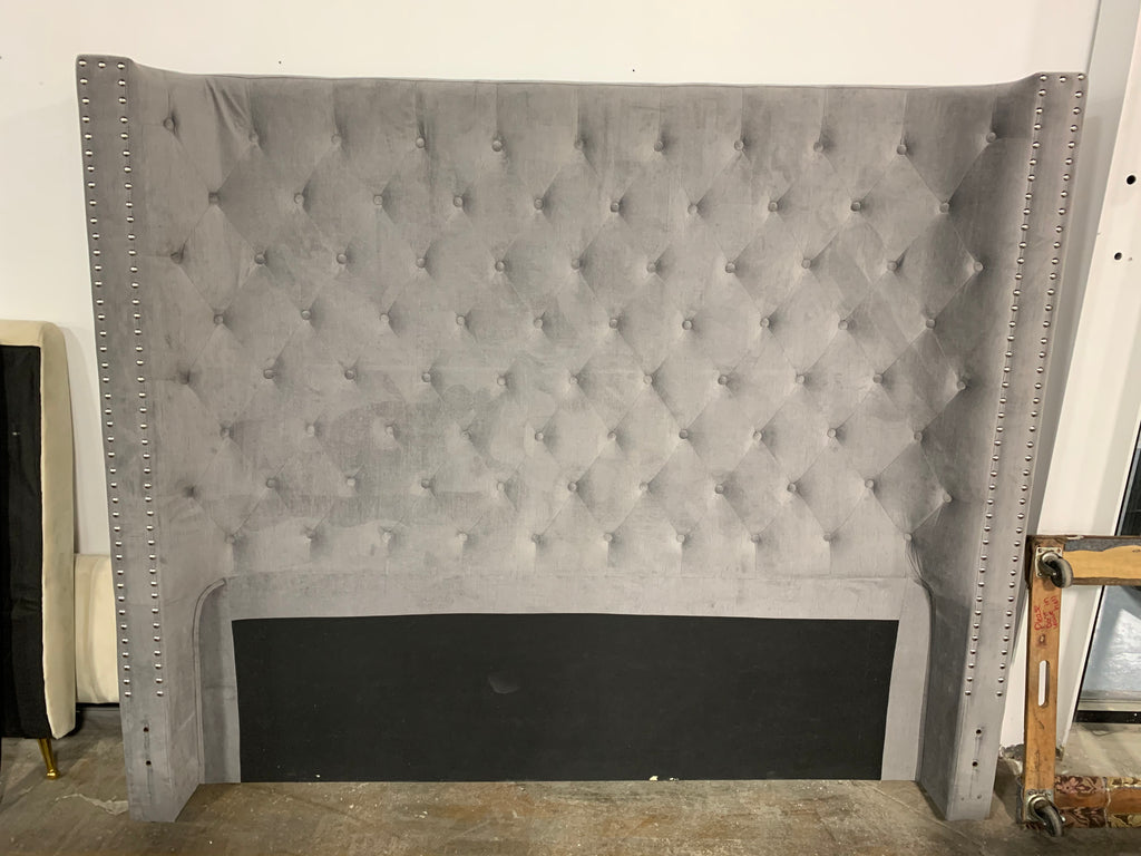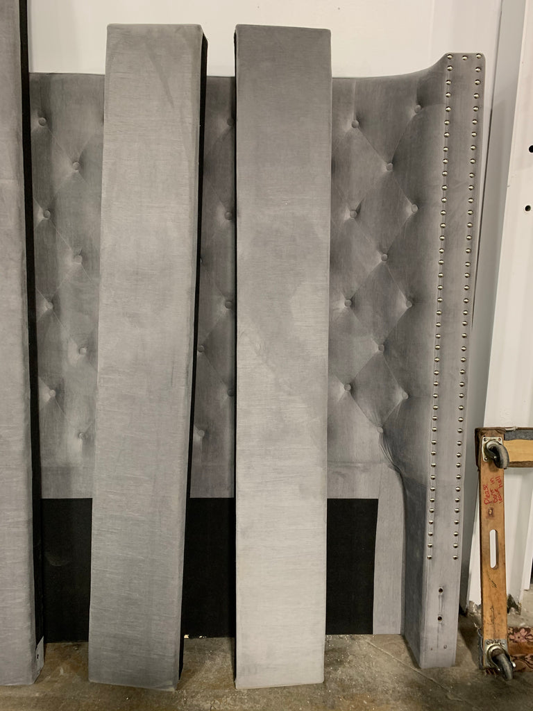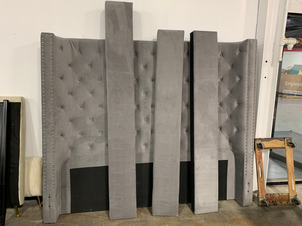 In GREAT condition. On left side of the headboard there is snag in the fabric at the very bottom, and the right side of the headboard has two very faint stains. All are included in the attached pictures. Bed includes headboard, footboard, side boards. ***Hardware and legs are not included.*** Please see ALL photos for details.
