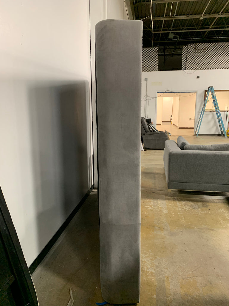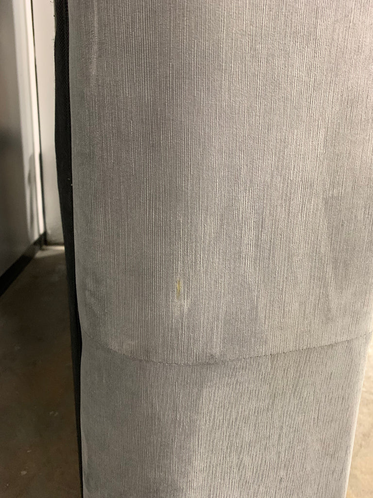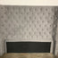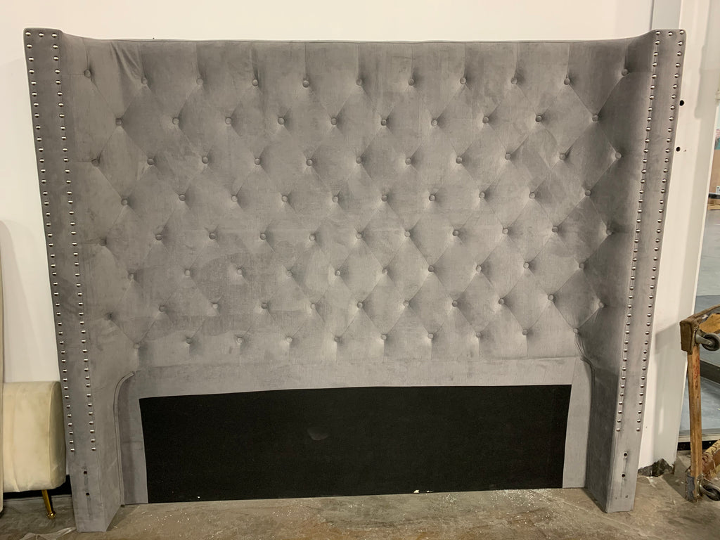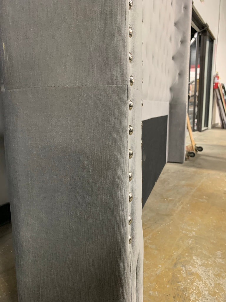 In GREAT condition. On left side of the headboard there is snag in the fabric at the very bottom, and the right side of the headboard has two very faint stains. All are included in the attached pictures. Bed includes headboard, footboard, side boards. ***Hardware and legs are not included.*** Please see ALL photos for details.