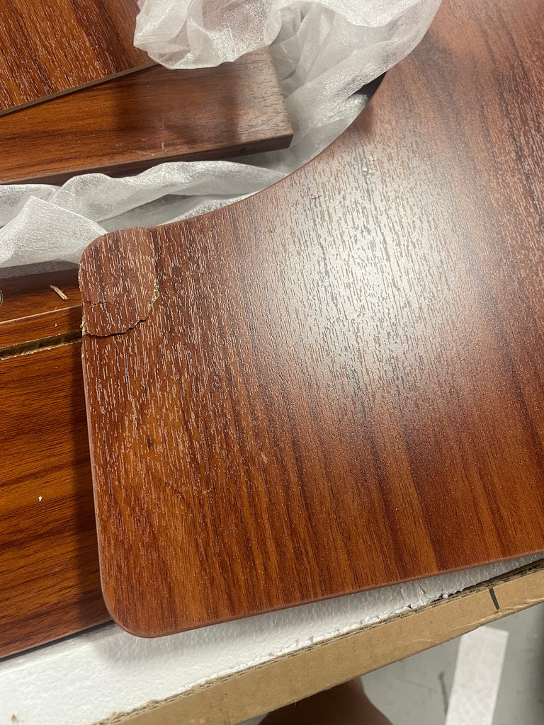 Note: there is some damage on a piece, chipped finish- see pics. Also, not in original packaging, the hardware is included and most of the hardware is all in original packaging but there are a few loose cam locks so it is possible customer would need to obtain a screw or 2.
