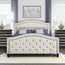 King Size - tufted camelback upholstered platform bed in dune beige. No box spring required. In-box item, requires assembly. (Previously opened box)