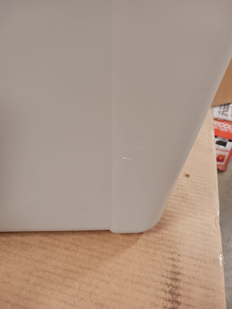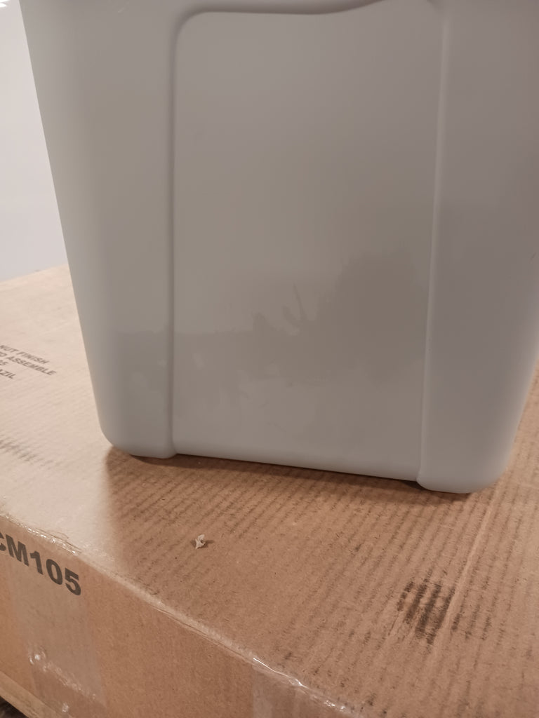 Note: AS IS: The foam part and the plastic outside piece have detached and need to be reglued together. There are 2 slight scratches on the outside. There is also a water stain on the outside as well. See the photos provided.