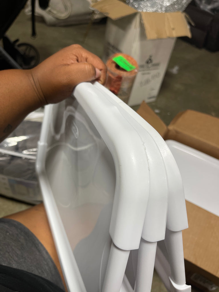 Note: Top lid has a scuff on corner,also a small piece of bent plastic, see picture.