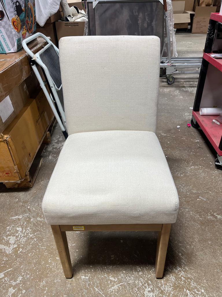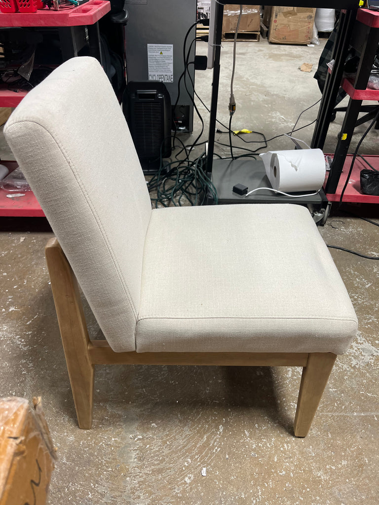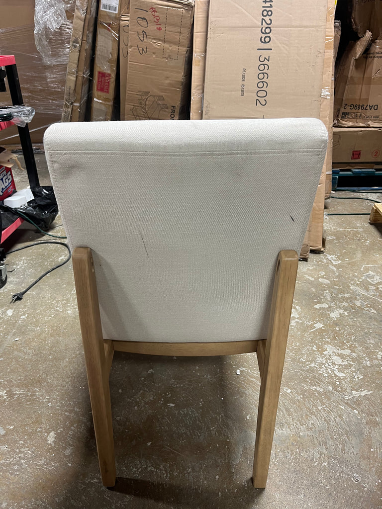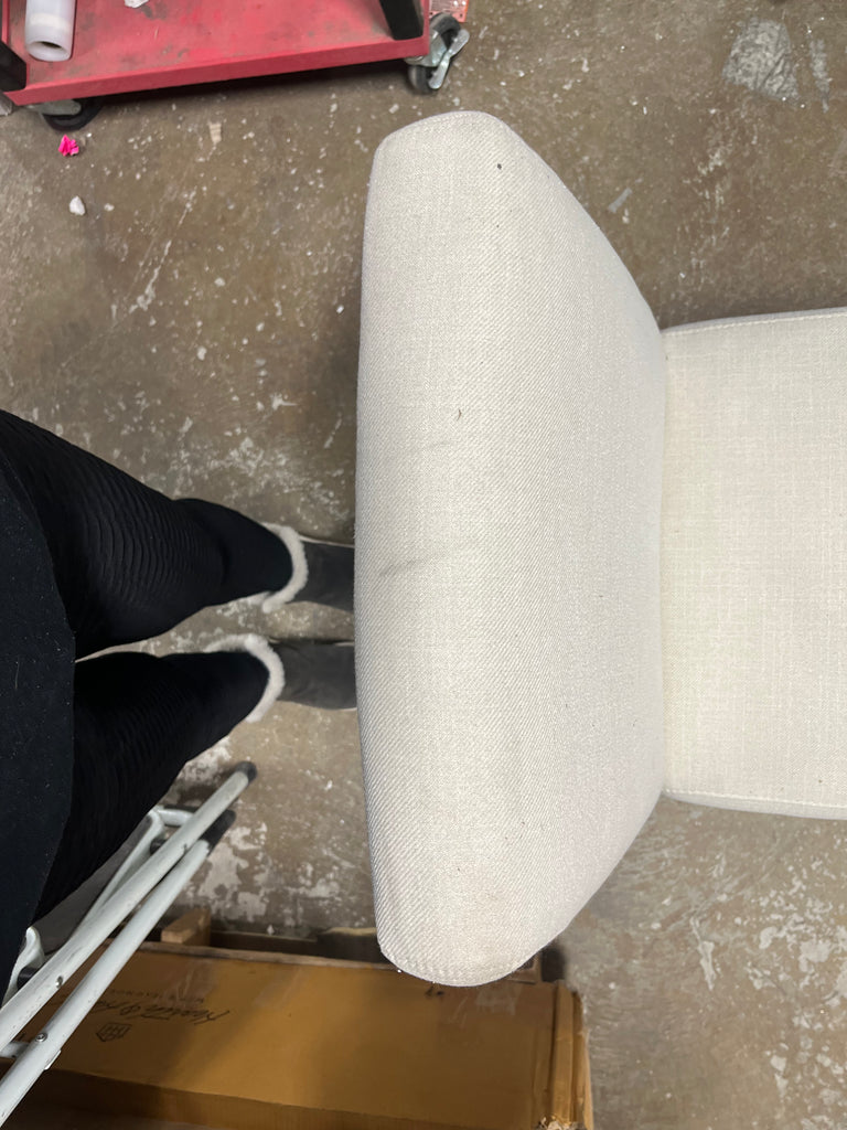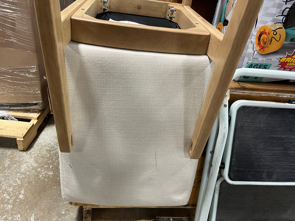 Note: Missing back support bar. Cushioned seat has some dark line markings on the top and back of it. Otherwise chair looks nice. See pictures for more details.