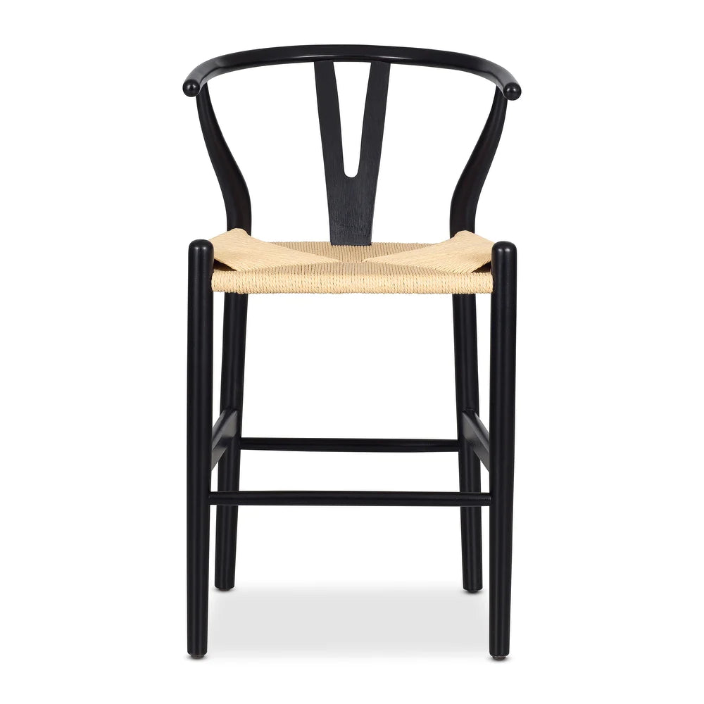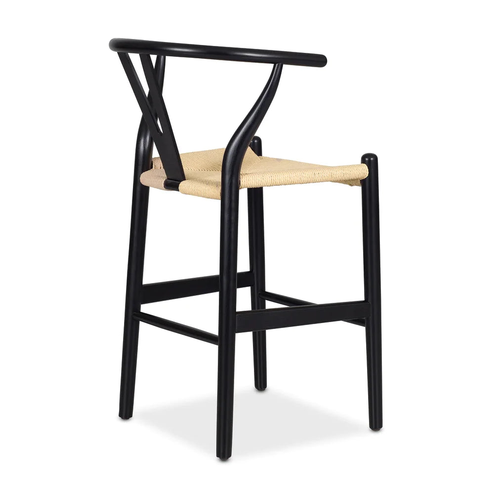 Weave Counter Stool - Solid Wood Frame - Black