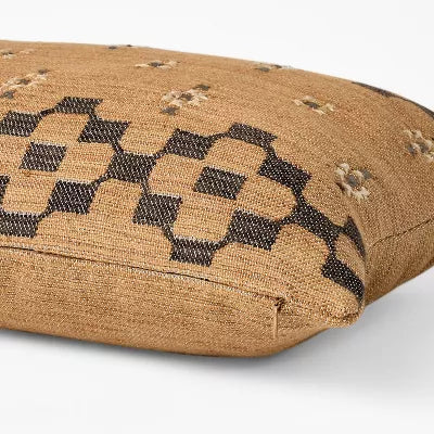 Woven with Cross Stitching Lumbar Throw Pillow Brown/Cream